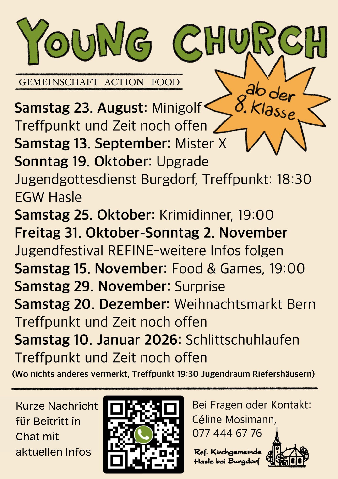 YoungChurch: für Jugendliche ab der 8. Klasse